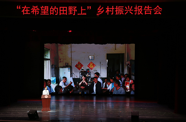 報告會分為《我們的理想在希望的田野上》《我們的事業在希望的田野上》《我們的未來在希望的田野上》三個篇章。報告團成員晏洲、彭陽、簡義相、張雪、楊大可、嚴克美分別以《苦過必有甜》《做農業現代化的耕耘者》《干在鄉村有奔頭》《奮斗的青春最美麗》《綠水青山就是金山銀山》《山中自有新天地》為題,講述了自己扎根農村、奮斗在農村的故事。其中,在農村創新創業的青年榜樣簡義相、發展電商產業帶領鄉村發展的大學生村官張雪不僅作為報告人,同時也作為我校校友向同學們分享了自己從走進鄉村到熱愛鄉村的心路歷程。