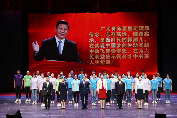 報告會的最后,6名報告人帶領我校30名學生代表誦讀了習近平總書記在十九大報告中對青年的寄語。