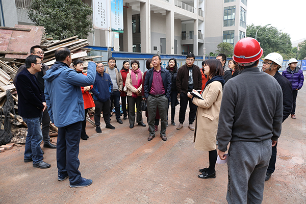 巡視中,基建處處長彭剛介紹了留學生1號樓、留學生2號樓、綜合實驗樓1號樓、綜合實驗樓2號樓,學生公寓樓等五個在建項目,分別就項目的體量配置、功能定位、完工時間等方面逐一詳細說明。巡視中,部分代表就教職工關心的問題提出詢問,如:在建樓宇外墻瓷磚的安全隱患問題;室內裝修是否環保、地下車庫建設等問題。彭剛處長一一作了答復,他介紹在建的40000多平方米的學生公寓樓外墻采用漆面,不用外墻瓷磚,已充分考慮到外墻隱患問題。所有在建項目的內裝修,比如油漆、家具等,在交房時會請專業環保機構進行檢測,確保檢測合格才交付使用。代表們也建議所有在建項目完工后,進一步整合學校現有的資源,完善師生活動陣地建設,建立相對獨立的教職工、學生活動中心,以滿足廣大師生日益豐富的文化生活需要。