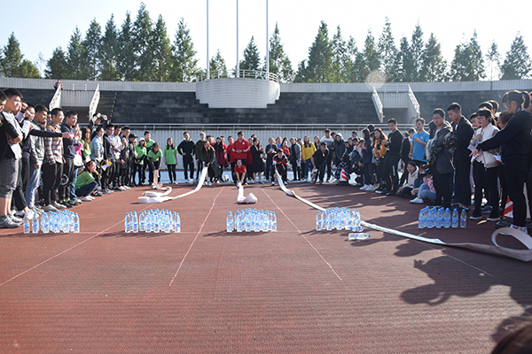 此次活動(dòng)分為兩個(gè)部分進(jìn)行。第一部分為消防疏散演練,由消防人員對(duì)和風(fēng)苑D棟學(xué)生公寓參加演練人員進(jìn)行培訓(xùn)講解,并實(shí)地進(jìn)行應(yīng)急疏散演練。第二部分為消防趣味運(yùn)動(dòng)會(huì),由學(xué)生和教職工代表組成的20支隊(duì)伍共同參與了“接力滅火”、“連接水帶接力”、“水帶保齡球”、“穿越火線”四個(gè)趣味競(jìng)賽項(xiàng)目的角逐。此外,活動(dòng)現(xiàn)場(chǎng)還特別設(shè)置了消防知識(shí)有獎(jiǎng)問(wèn)答和消防體驗(yàn)區(qū),讓廣大師生學(xué)習(xí)和了解消防知識(shí),零距離接觸使用消防器材,掌握日常必備的消防技能。整個(gè)活動(dòng)趣味橫生、別開(kāi)生面,是一次集知識(shí)、趣味、體驗(yàn)為一體的創(chuàng)新型師生運(yùn)動(dòng)會(huì)。通過(guò)激烈爭(zhēng)奪,經(jīng)濟(jì)與管理學(xué)院獲得一等獎(jiǎng);美術(shù)學(xué)院和體育與健康科學(xué)學(xué)院獲得二等獎(jiǎng);生命科學(xué)學(xué)院、計(jì)算機(jī)與信息科學(xué)學(xué)院和地理與旅游學(xué)院獲得三等獎(jiǎng);體育與健康科學(xué)學(xué)院獲優(yōu)秀組織獎(jiǎng)。