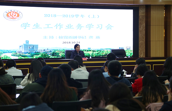 為提高輔導員班主任職業能力與素質,增強應知應會的成效,10月24日下午,我校學生工作業務學習會在博雅樓503舉行。學工部副部長(副處長)蔣霞、羅慶,學生事務管理科科長李鑫和學生心理健康教育與咨詢中心陳娟博士等四位老師受邀主講“輔導員班主任應知應會ABC”。學院分管學生工作副書記、學工辦主任、輔導員、班主任和學生處全體干部等110人參加。此次講座由校黨委副書記龔燕主持。