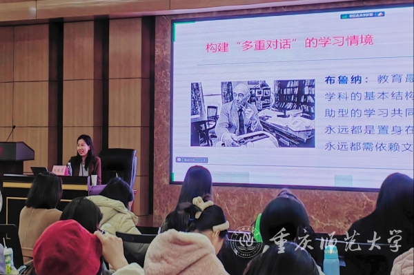 互動環節中,趙曉霞教授與在座師生展開了熱烈的討論。重慶師范大學附屬實驗小學和重慶大學城第一中學的一線教師提出了關于情境教學實踐的問題,趙教授有針對性做了回答。