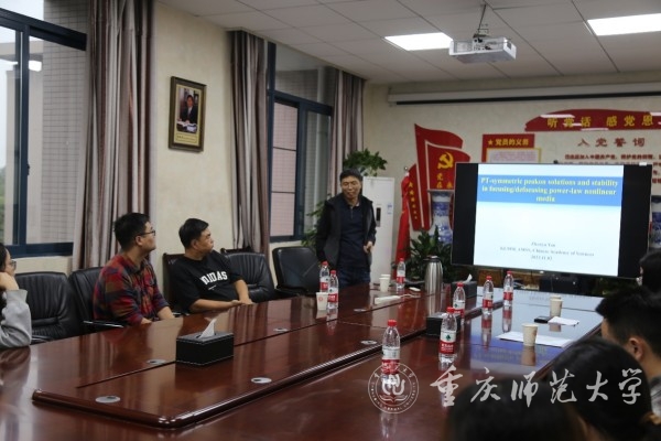 11月2日,國家杰青、中國科學院數學與系統科學研究院閆振亞研究員應邀在數學科學學院326會議室作題為"PT-symmetric peakon solutions and stability in focusing/defocusing power-law nonlinear media"的學術講座。數學科學學院院長楊志春主持講座,學院師生代表參加。