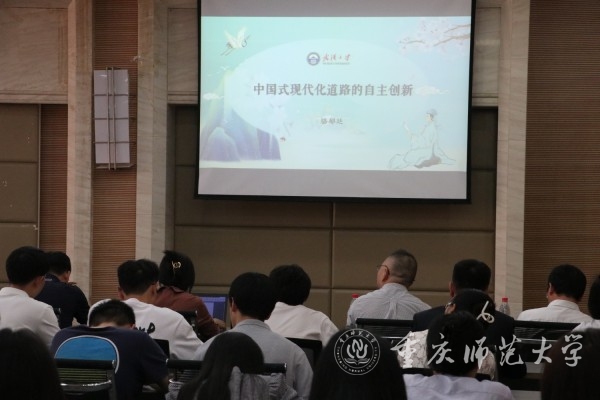 駱郁廷圍繞“國家獨立和自主探索相結合的現代化道路創新”“普遍真理與具體實踐相結合的現代化道路創新”“社會主義和市場經濟相結合的現代化道路創新”“創新為主與借鑒為輔相結合的現代化道路創新”四部分展開講座。他強調深入分析、揭示和把握中國式現代化的本質特征對于全面深刻理解和堅定不移走中國式現代化道路,以推進社會主義現代化強國建設,實現中華民族偉大復興具有重大意義;同學們要在中國式現代化道路上繼續堅持自主創新,以助力我國現代化建設取得更大成就。