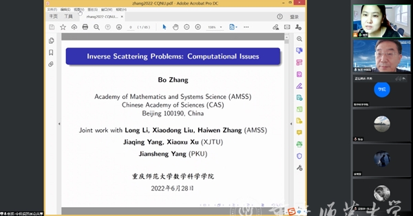 6月28日下午,中國(guó)科學(xué)院數(shù)學(xué)與系統(tǒng)科學(xué)研究院“百人計(jì)劃”研究員、應(yīng)用數(shù)學(xué)研究所副所長(zhǎng)、反問(wèn)題國(guó)際聯(lián)合會(huì)東亞分會(huì)副主席、中國(guó)數(shù)學(xué)會(huì)常務(wù)理事張波以線(xiàn)上的形式為我校師生作了題為《Inverse Scattering Problems: Computational Issues》的學(xué)術(shù)報(bào)告。數(shù)學(xué)科學(xué)學(xué)院計(jì)算數(shù)學(xué)團(tuán)隊(duì)教師,應(yīng)用數(shù)學(xué)和計(jì)算數(shù)學(xué)方向的研究生參加報(bào)告會(huì),數(shù)學(xué)科學(xué)學(xué)院曾芳副教授主持報(bào)告會(huì)。