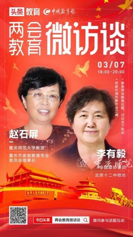 3月3日晚,我校教授趙石屏應(yīng)邀參加中國教育報刊社“兩會E政錄”視頻訪談節(jié)目,本次節(jié)目以“給家長減負(fù),解作業(yè)之痛”為話題,由中國教育報家庭教育周刊主編楊詠梅主持,全國政協(xié)委員、北京十二中校長李有毅也參與了此次討論。
