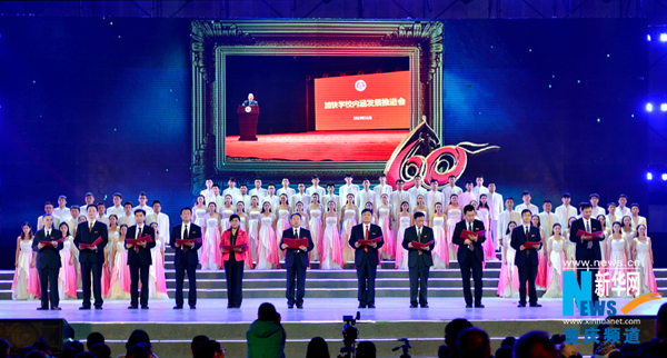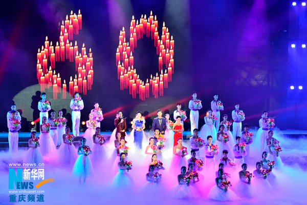 | 10月19日,2000余名重師校友齊聚重慶師范大學虎溪校區,共慶重師60歲生日,圖為紀念大會上的表演《生日快樂》。 記者李相博攝 |