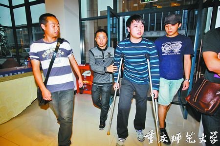 昨日,重師大,李衛(wèi)在同學的陪伴下來到美術學院。重慶晨報記者 許恢毅 攝